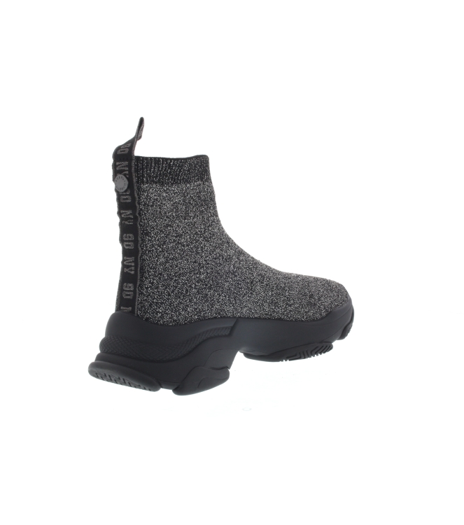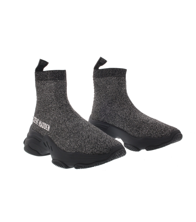 Steve Madden sok sneaker voor dames, artikel Master in het zwart metallic stretch. Fraai detail is de chunky lichtgewicht sneakerzool waardoor je nog prettiger loopt. De pasvorm valt klein DUS ONS ADVIES IS 1 MAAT GROTER BESTELLEN