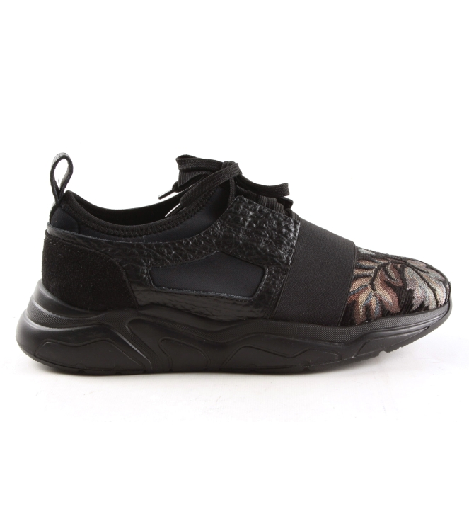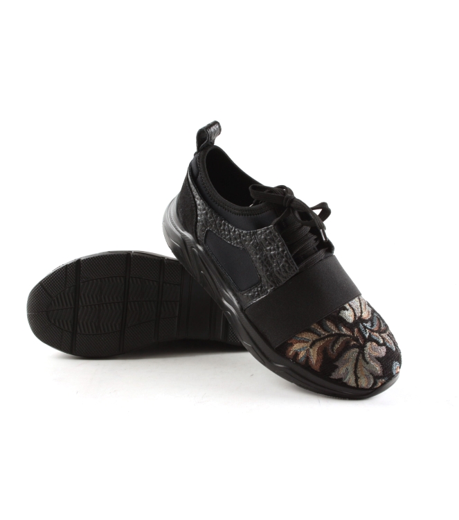 Stokton dames sneaker artikel 19-D in het zwart leer. Uniek is de sierlijke bewerking op de neus. Stokton staat voor Italiaanse mode en hoogstaand leer. De pasvorm valt een maat groter uit. Tevens beschikkend over een uitneembaar voetbed.