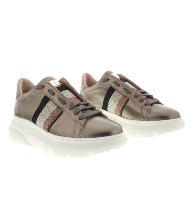 Stokton dames sneaker artikel 650-D Elastico in het brons leer. Uniek is naast de veter ook de elastieksluiting. De maakwijze is volledig leder en de sneaker beschikt tevens over een uitneembaar voetbed. Stokton staat voor hoogwaardig materiaal en fashion. DE PASVORM VALT EEN MAAT GROTER UIT.