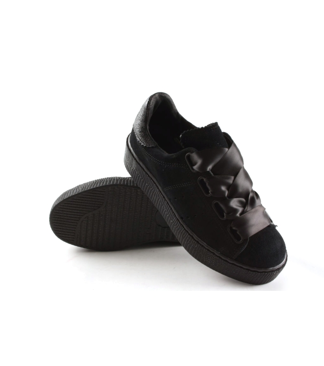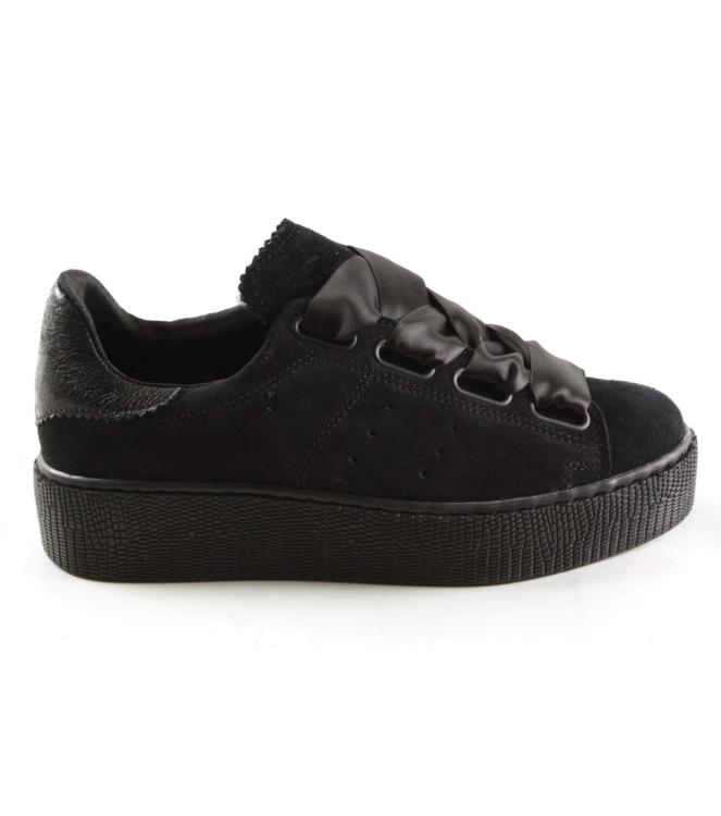 Dames veterschoen van Tango, artikel Chantal 13-R in het zwart suede leer. Fraai detail is de lintveter en de dikke rubberzool wat je nu veel in de mode terug ziet. De pasvorm valt normaal.