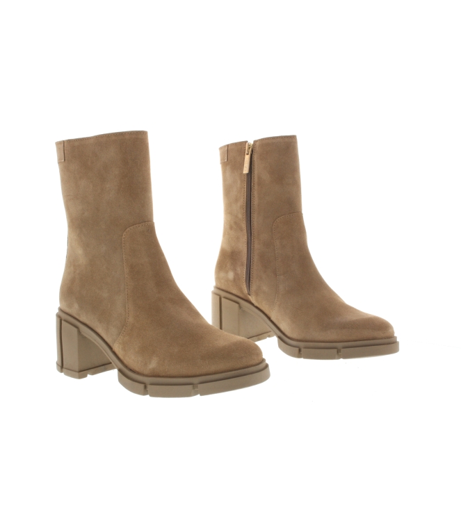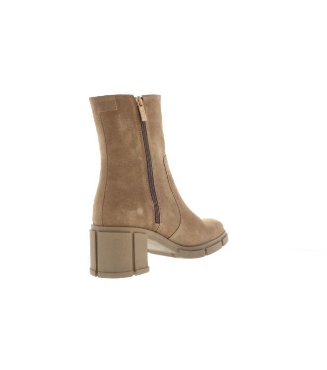 Tango enkellaars voor dames, artikel Romy Heel 1-F in het bruin nubuck leer. De pasvorm valt normaal.