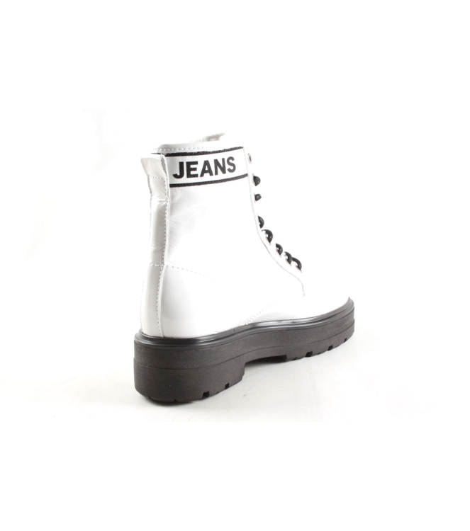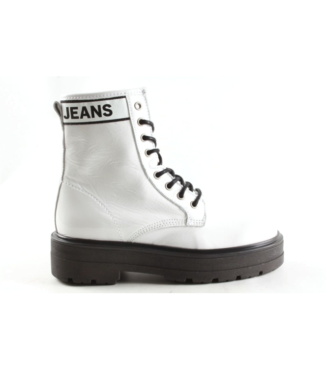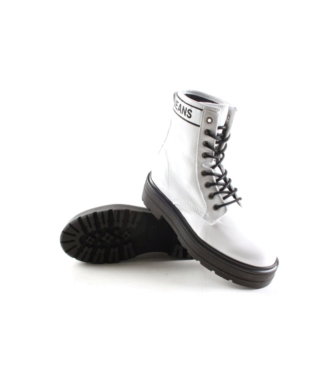 Tommy Jeans dames stoere veterboot artikel EN0EN00700 in het wit lakleer. De ultieme look voor deze winter, deze musthave van Tommy Hilfiger aan je voeten. De pasvorm valt normaal.