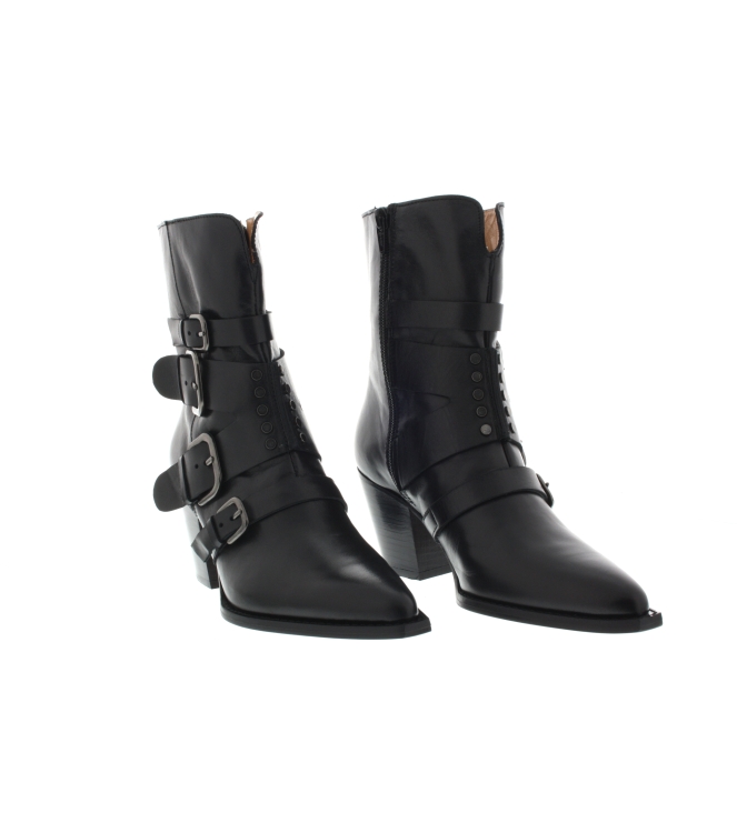 Toral dames enkellaars artikel TL-12553 in het zwart leer. Fraai detail zijn de meerdere stijvolle gespen op de laars. De looks zijn zeer fijn als u de laars aan heeft. De maakwijze is volledig leder en de pasvorm valt normaal.