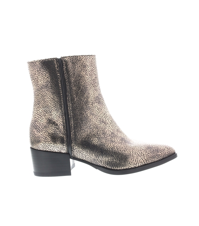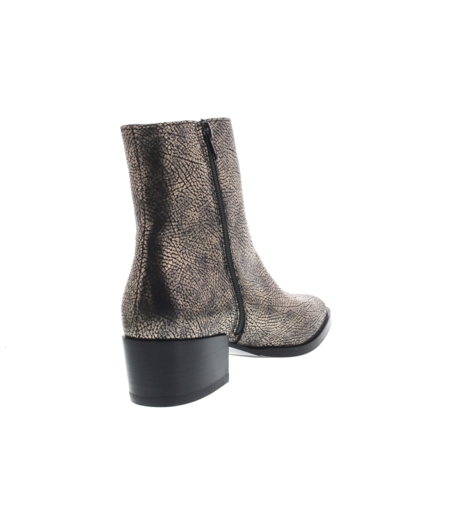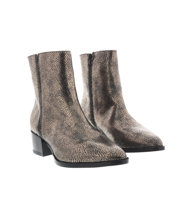 Via Vai enkellaars voor dames, artikel Rose Baker welke gemaakt is in het platine metallic leer. De pasvorm valt normaal.