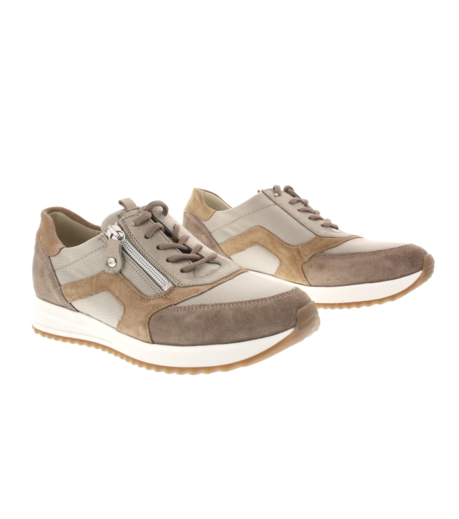 Waldlaufer dames sneaker artikel Vicky 752003-402-245 in het beige/brons leer. De sneaker is licht van gewicht wat voor een ultiem loopcomfort zorgt. Tevens voorzien van een uitneembaar voetbed. De pasvorm valt breder door de H wijdte.