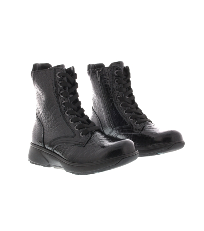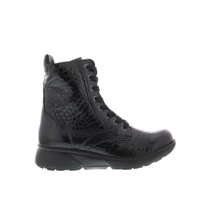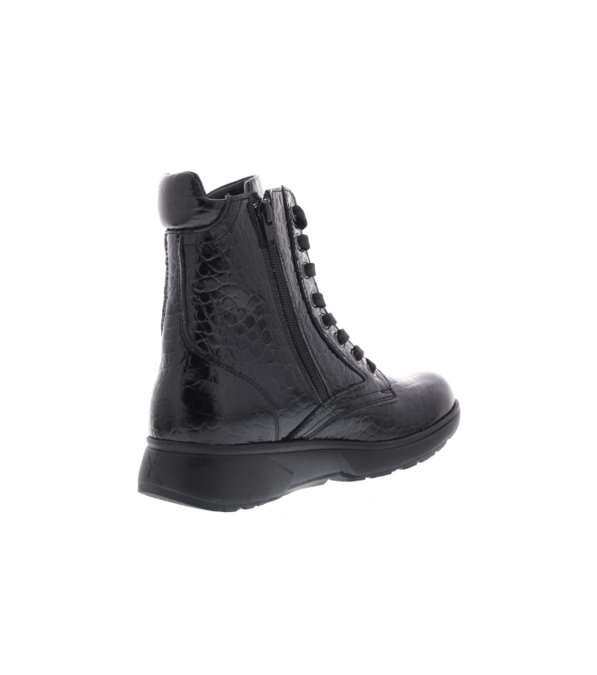 Xsensible boots voor dames, artikel Albi welke gemaakt is in het zwart lakleer. Beschikbaar met uitneembaar voetbed. De pasvorm valt breed door de H wijdte.