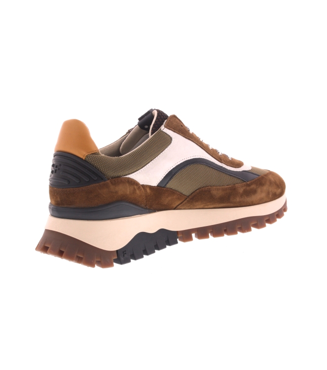 Floris van Bommel heren sneaker, artikel De Grommer 05.05 in het cognac combi nubuck leer. De binnenzijde is volledig leder gemaakt. Tevens beschikbaar met een uitneembaar voetbed. Deze kleuren laten zich makkelijk combineren onder een jeans. De pasvorm valt normaal met zijn G 1/2 wijdte.